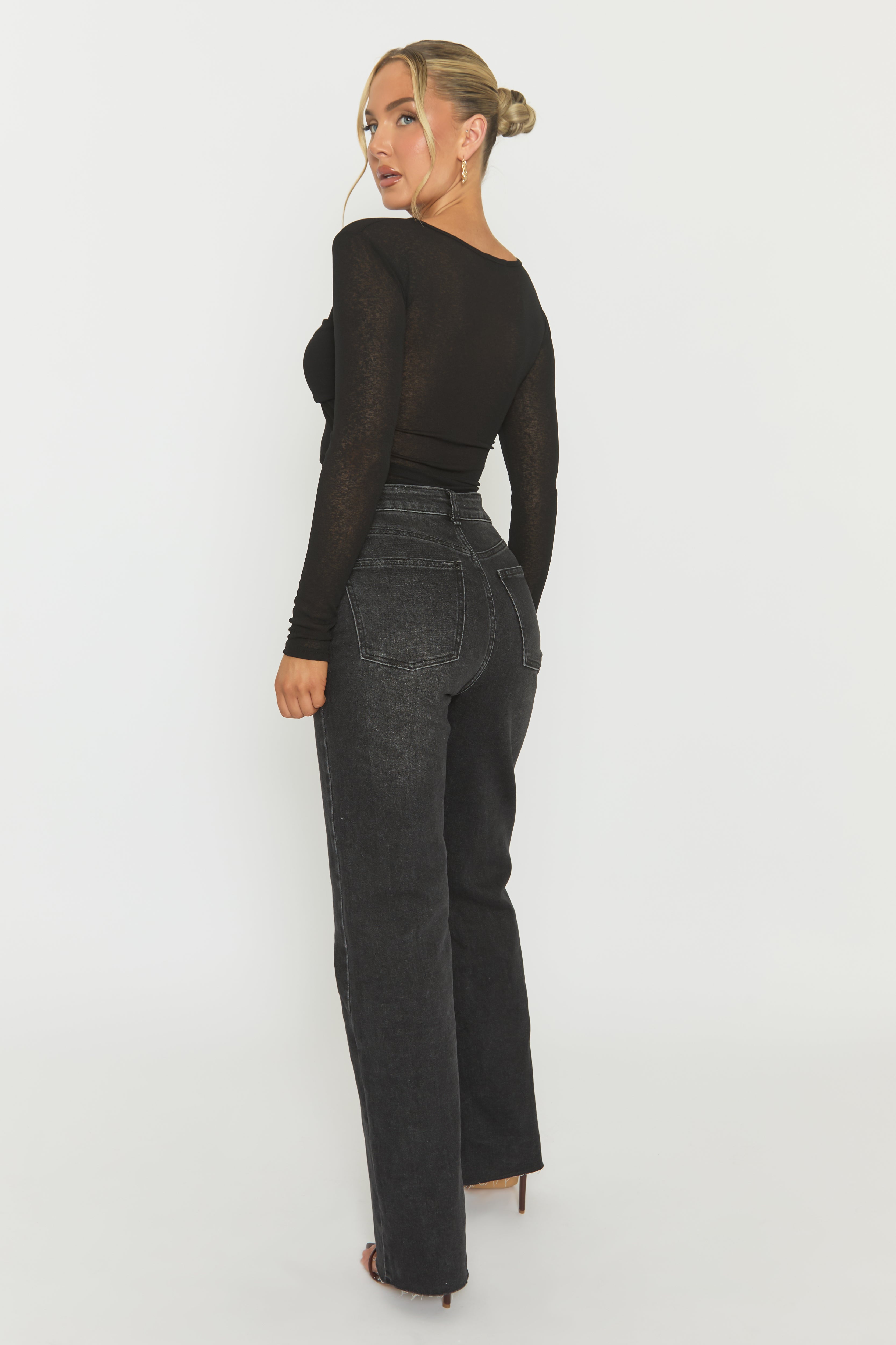 Nice top, covered in this Black Twist Front Long Sleeve Top. Featuring loopback jersey fabric, semi sheer design with long sleeves and twist front. Embrace the season's trends with our thoughtfully curated pieces that are perfect for mixing and matching, allowing you to create countless outfit combinations. Wear accessories of your choice to complete.