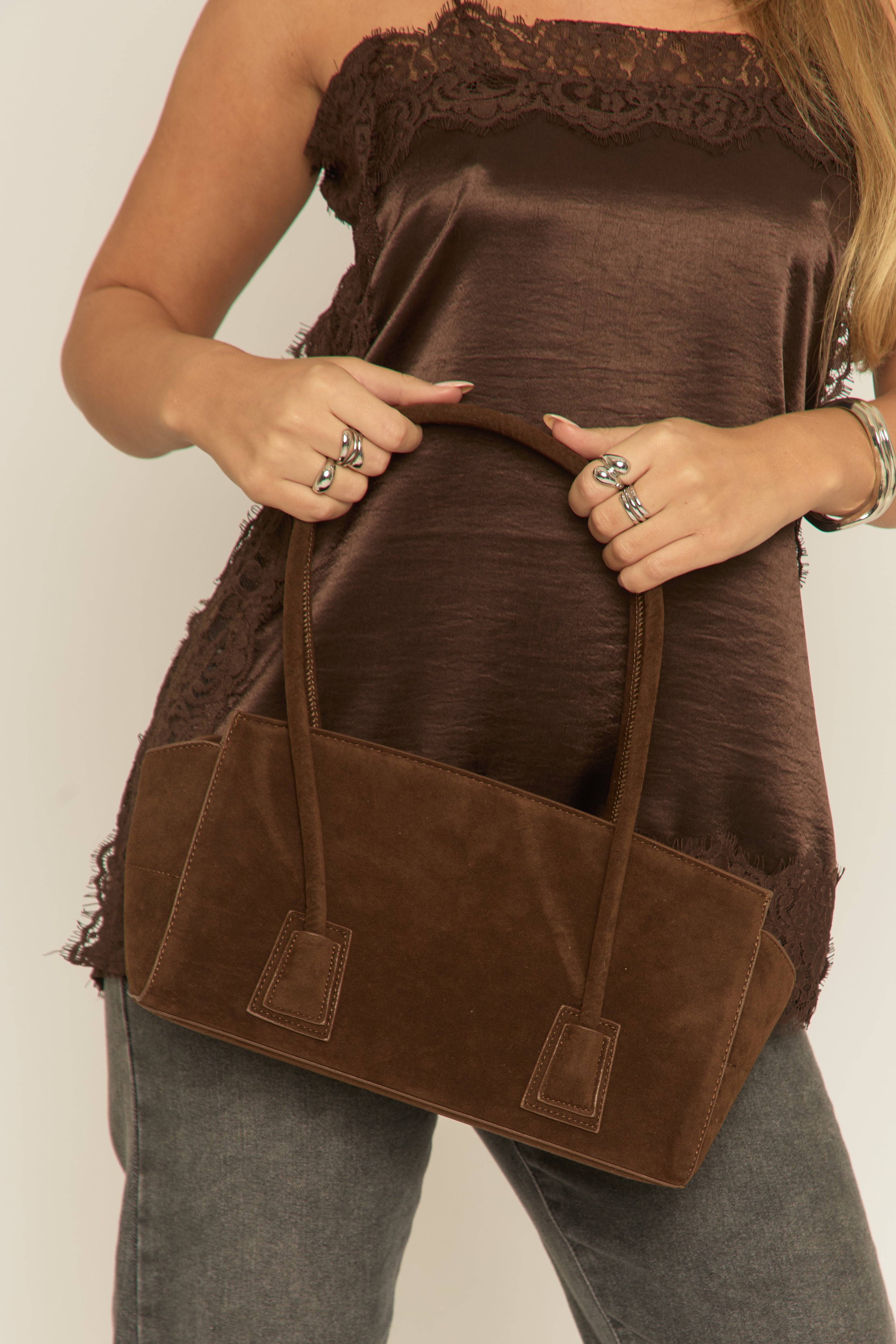 Brown Faux Suede Shoulder Bag - Blaine