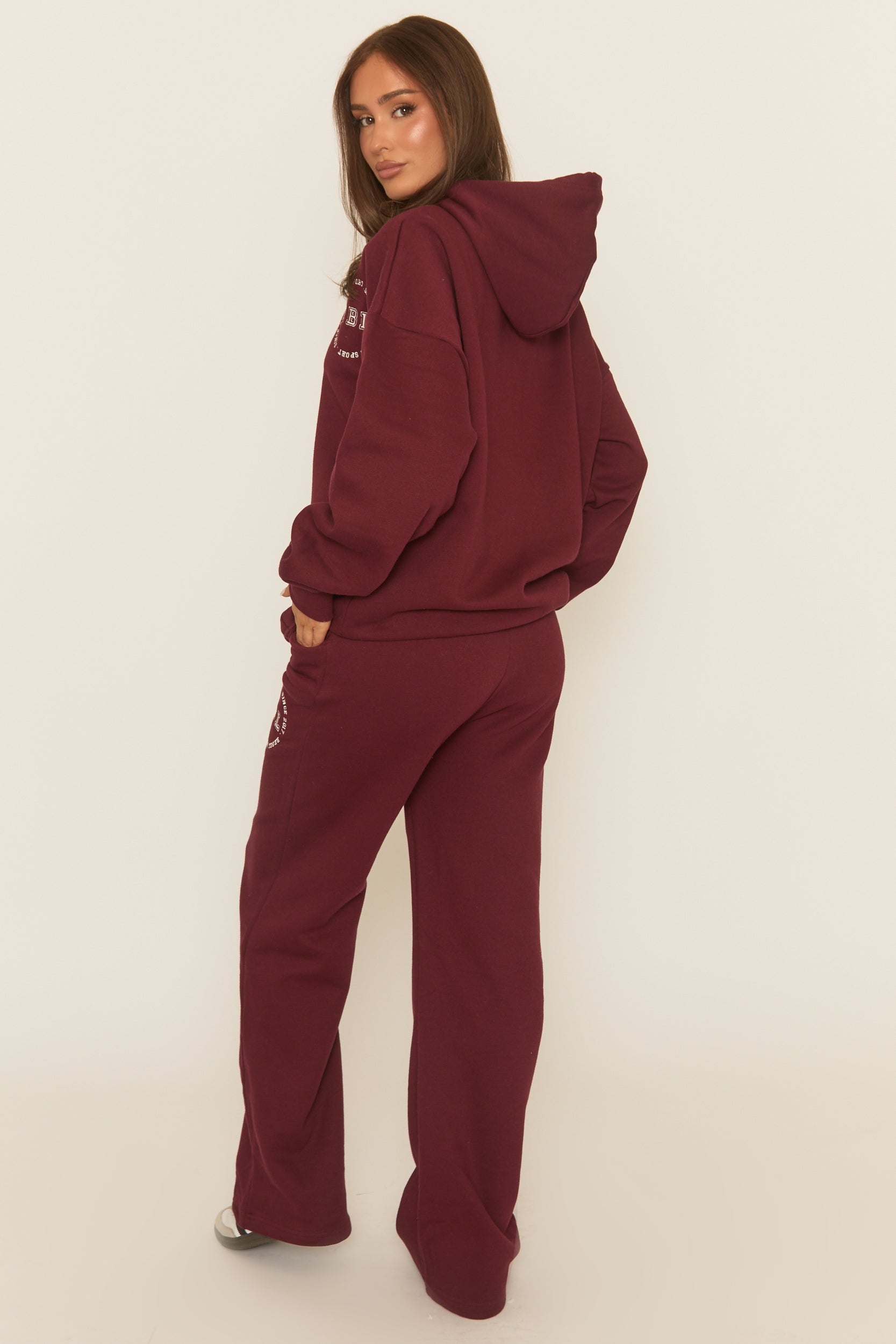 Get cosied up this season with this Wine Rebel Sport Wide Leg Joggers Featuring a brushed back jersey fabric, rebel print, and an oversized hoodie. Embrace the season's trends with our thoughtfully curated pieces that are perfect for mixing and matching, allowing you to create countless outfit combinations. Wear with heels and accessories of choice to complete your look