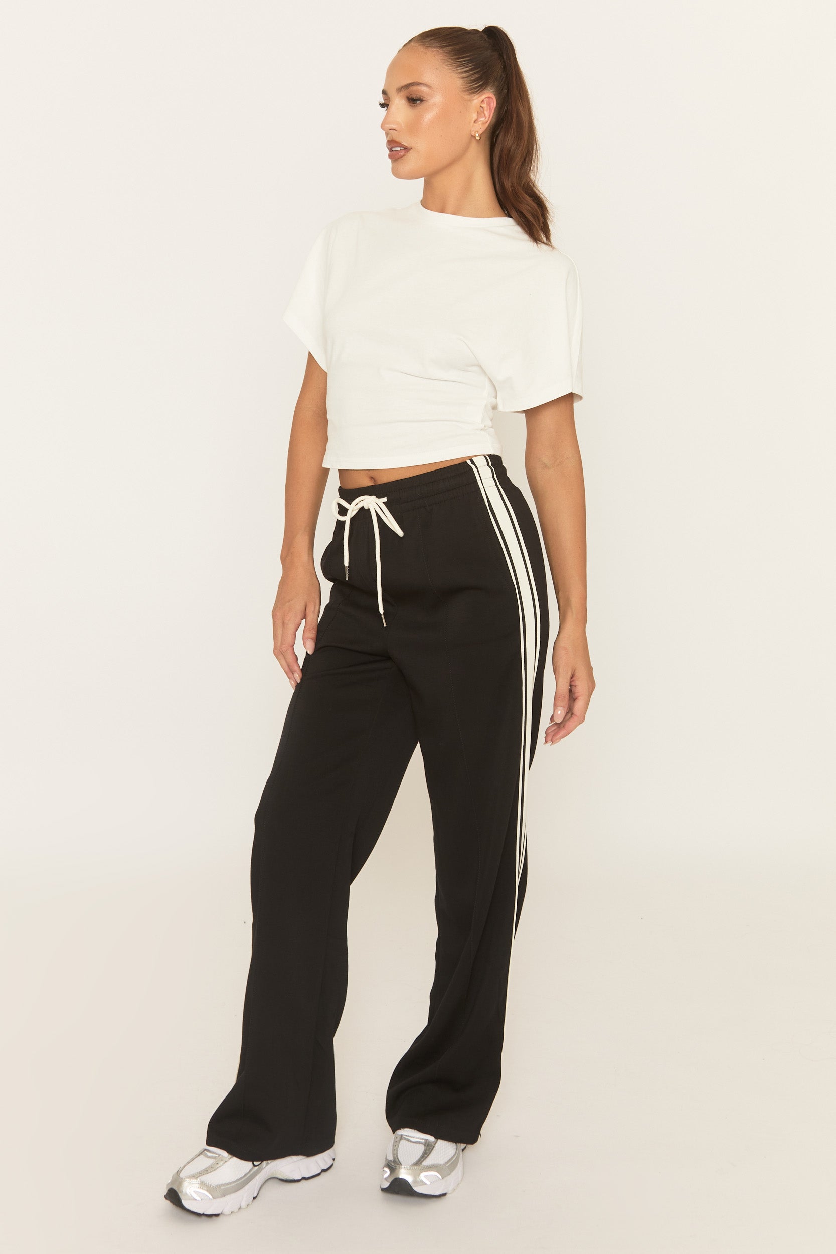 Black Seam Front Side Stripe Wide Leg Joggers