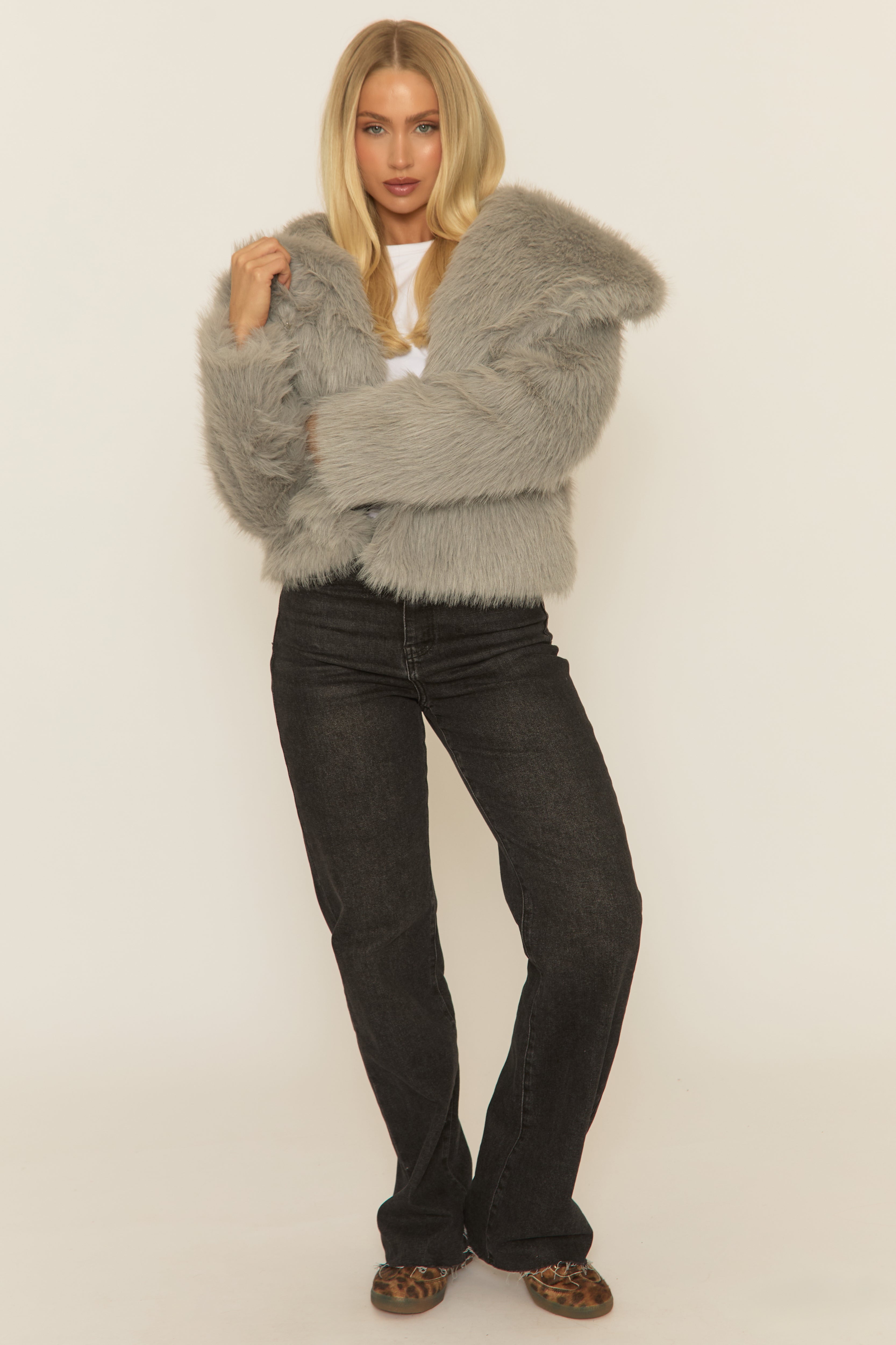 That girl in this Grey Collared Faux Fur Coat. Featuring a faux fur fabric and oversized collar design . Embrace the season's trends with our thoughtfully curated pieces that are perfect for mixing and matching, allowing you to create countless outfit combinations. Wear with your winter outfits to elevate.