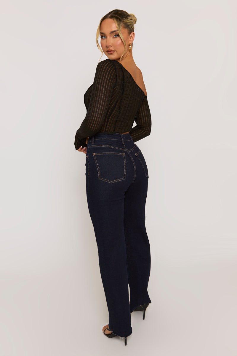 Your wardrobe will surely thank you for adding this Black Semi Sheer Off Shoulder Top to you collection. Featuring a semi sheer jersey fabric, off shoulder, asymmetric hem and a cropped length. Embrace the season's trends with our thoughtfully curated pieces that are perfect for mixing and matching, allowing you to create countless outfit combinations. Wear accessories of choice to complete your look