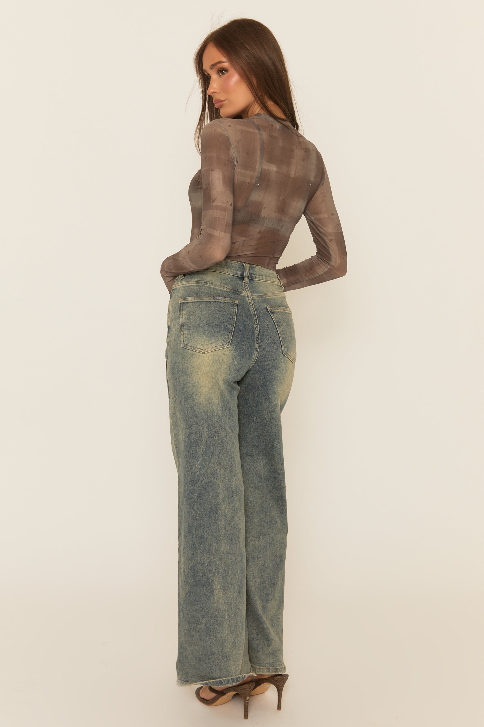 All eyes on you in this Taupe Abstract Print Mesh Bodysuit. Featuring a sheer mesh printed fabric, high neck design with long sleeves and crotch fastenings . Embrace the season's trends with our thoughtfully curated pieces that are perfect for mixing and matching, allowing you to create countless outfit combinations. Wear with a faux leather skirt and boots for a glam edge.