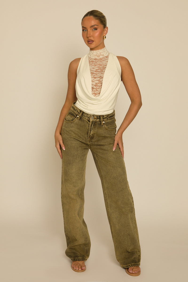 Show stopping in our White Lace Drape Front Bodysuit. Featuring a slinky fabric with sheer lace insert design, high neck and popper fastenings. Embrace the season's trends with our thoughtfully curated pieces that are perfect for mixing and matching, allowing you to create countless outfit combinations. Wear with denim and heels for dinner with the girls.