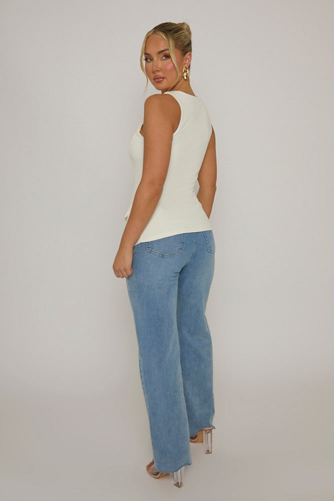 Add all the chic vibes to your wardrobe with this White Gold Button Detail Longline Waistcoat. Featuring a crepe fabric, button up front, sleevless and a waistcoat style top. Embrace the season's trends with our thoughtfully curated pieces that are perfect for mixing and matching, allowing you to create countless outfit combinations. Wear with heels and accessories of choice to complete your look.