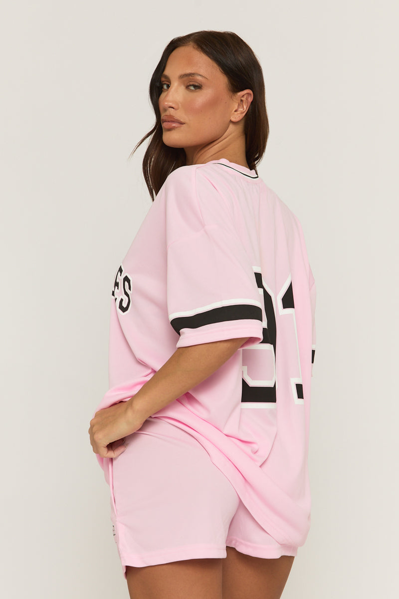Pink Oversized Varsity Football T-shirt and Shorts Set - Fiji