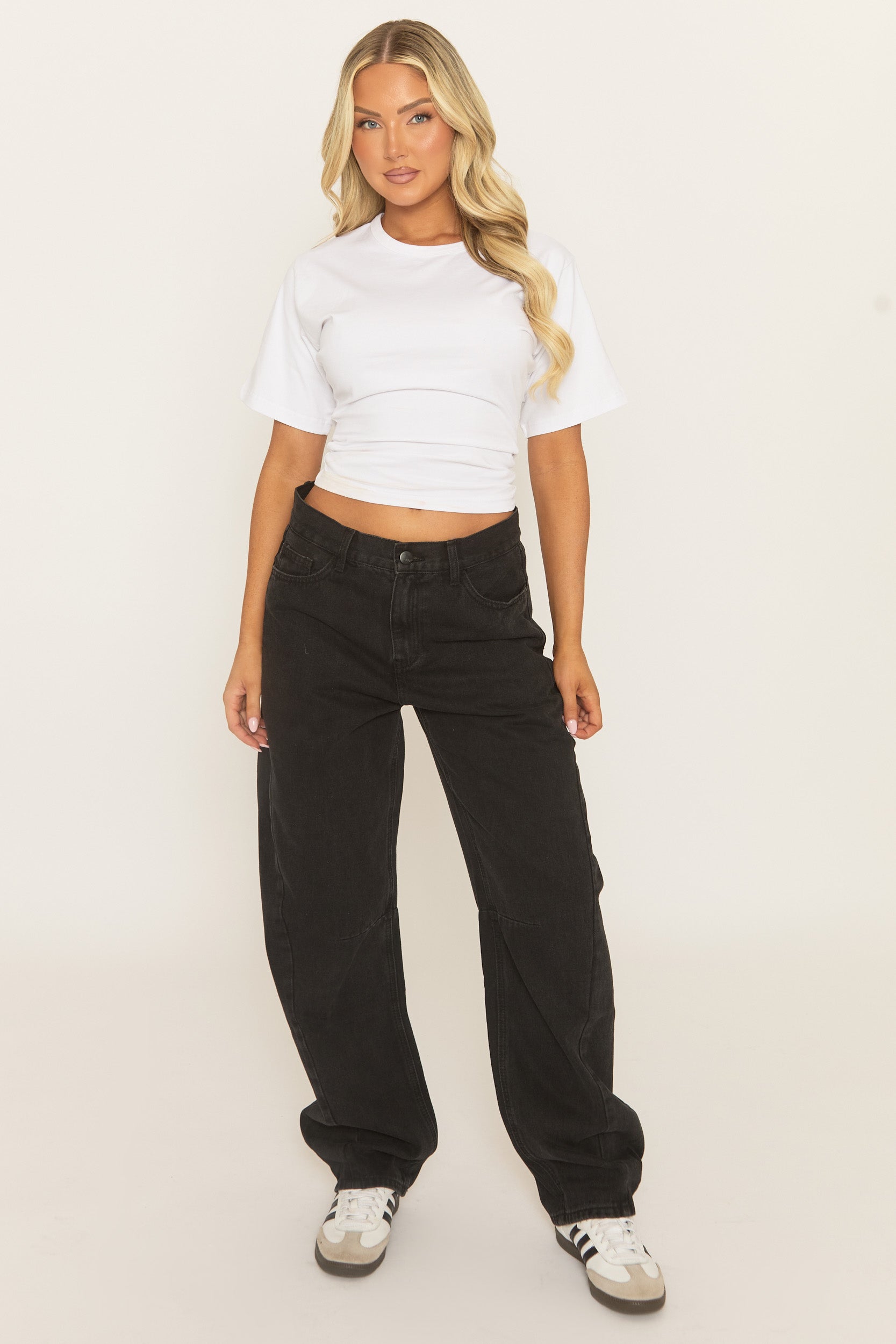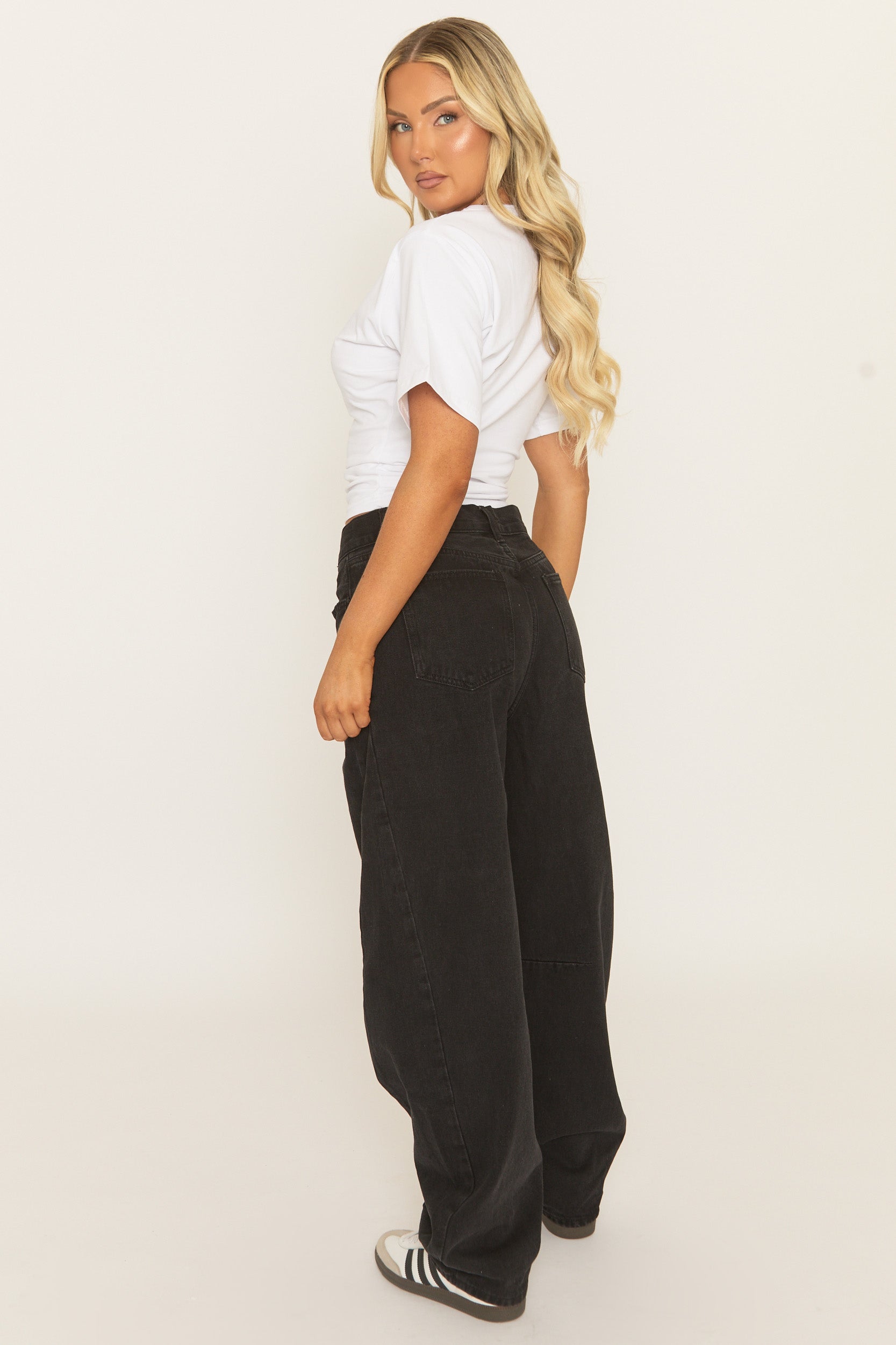 On trend in these Black Balloon Leg Denim Jeans. Featuring a non stretch denim fabric, balloon leg design with button fastening, pockets and belt loops. Embrace the season's trends with our thoughtfully curated pieces that are perfect for mixing and matching, allowing you to create countless outfit combinations. Wear with an oversized jumper and chunky trainers.