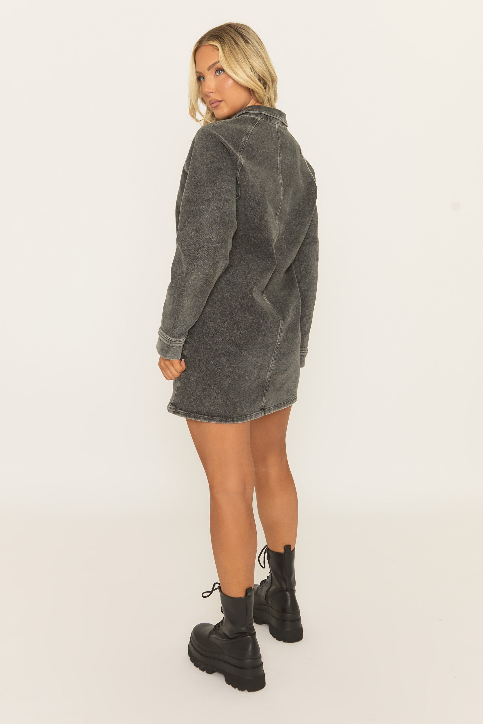 A new season staple with this Grey Acid Wash Denim Mini Dress. Featuring a non stretch acid wash fabric, collared design with long sleeves and mini length. Embrace the season's trends with our thoughtfully curated pieces that are perfect for mixing and matching, allowing you to create countless outfit combinations. Add chunky boots for a luxe edge.