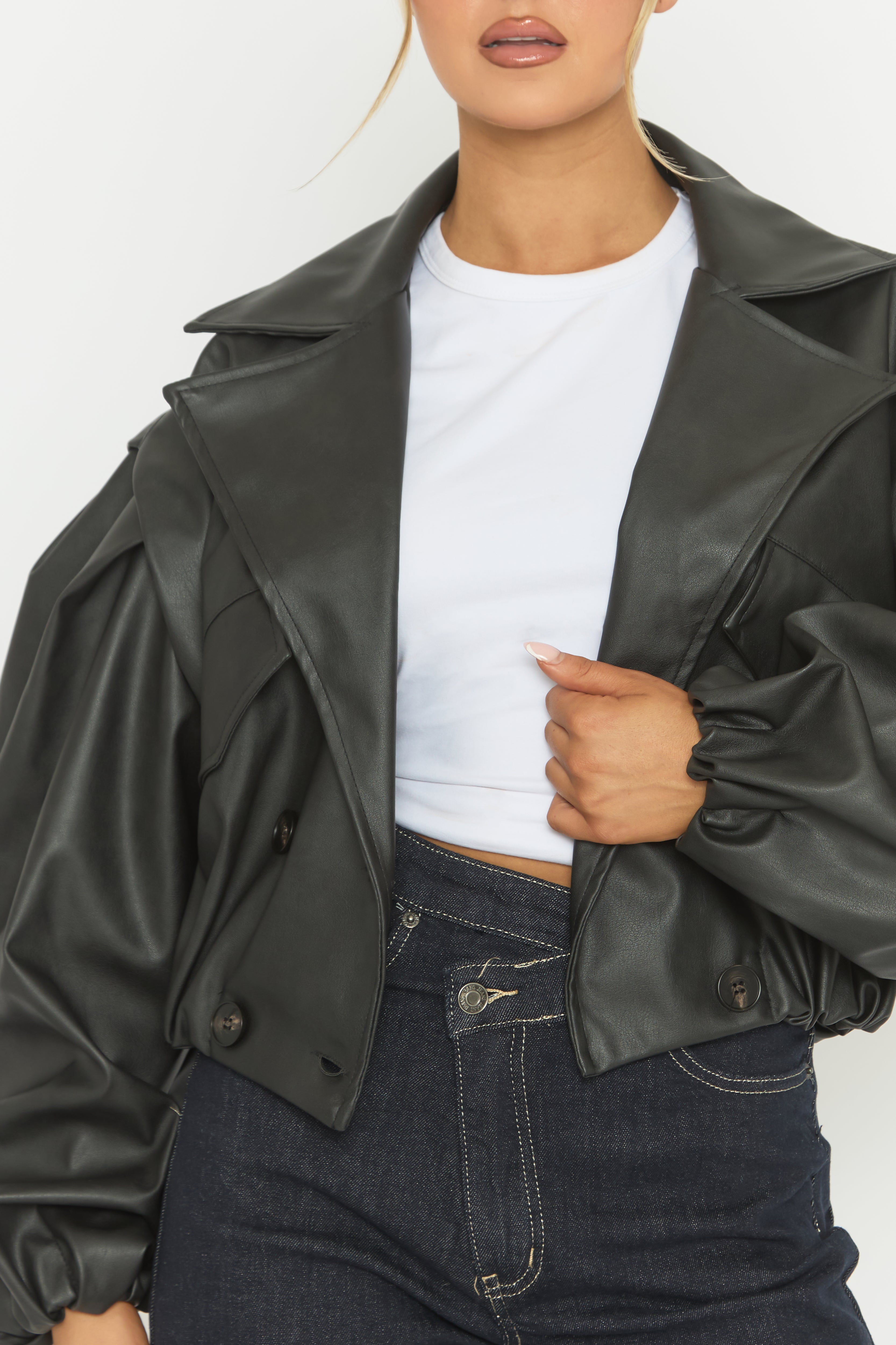Add some luxe to your coat collection with this Black Faux Leather Double Breasted Cropped Trench Coat. Featuring a faux leather fabric, cropped trench design with double breasted button detail, pockets and bubble hem. Embrace the season's trends with our thoughtfully curated pieces that are perfect for mixing and matching, allowing you to create countless outfit combinations. Layer over any outfit for an instant new season update.