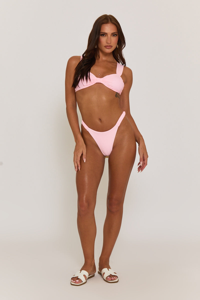 Shine under the sun in this Pink Knot Front Bikini. This luxe swim set features a slinky fabric, knot detail and elastic detail at the bottoms. Embrace the season's trends with our thoughtfully curated pieces that are perfect for mixing and matching, allowing you to create countless outfit combinations. Wear accessories of choice to complete your look