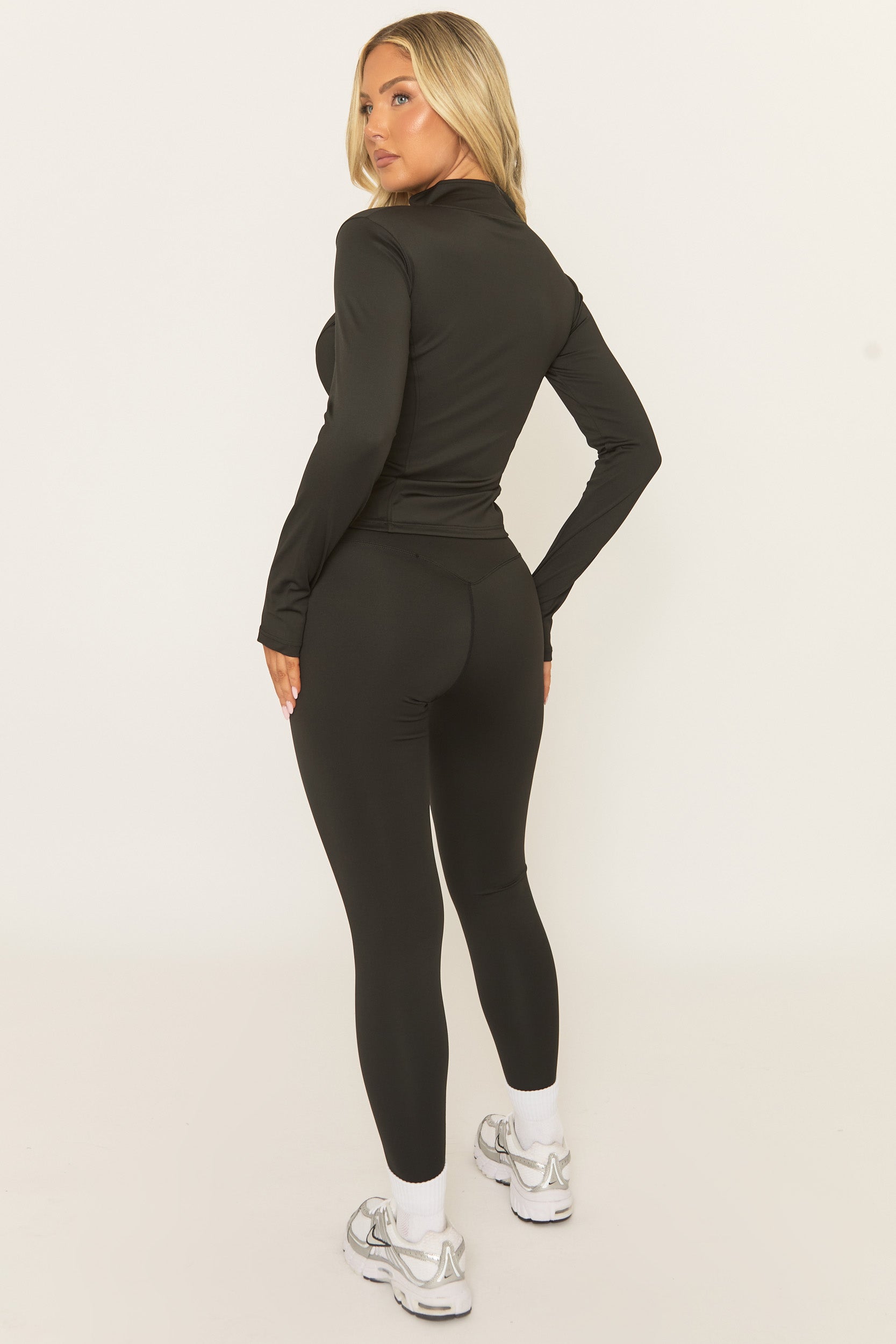 Black Zip Through Jacket and Legging Activewear Set - Rehyan