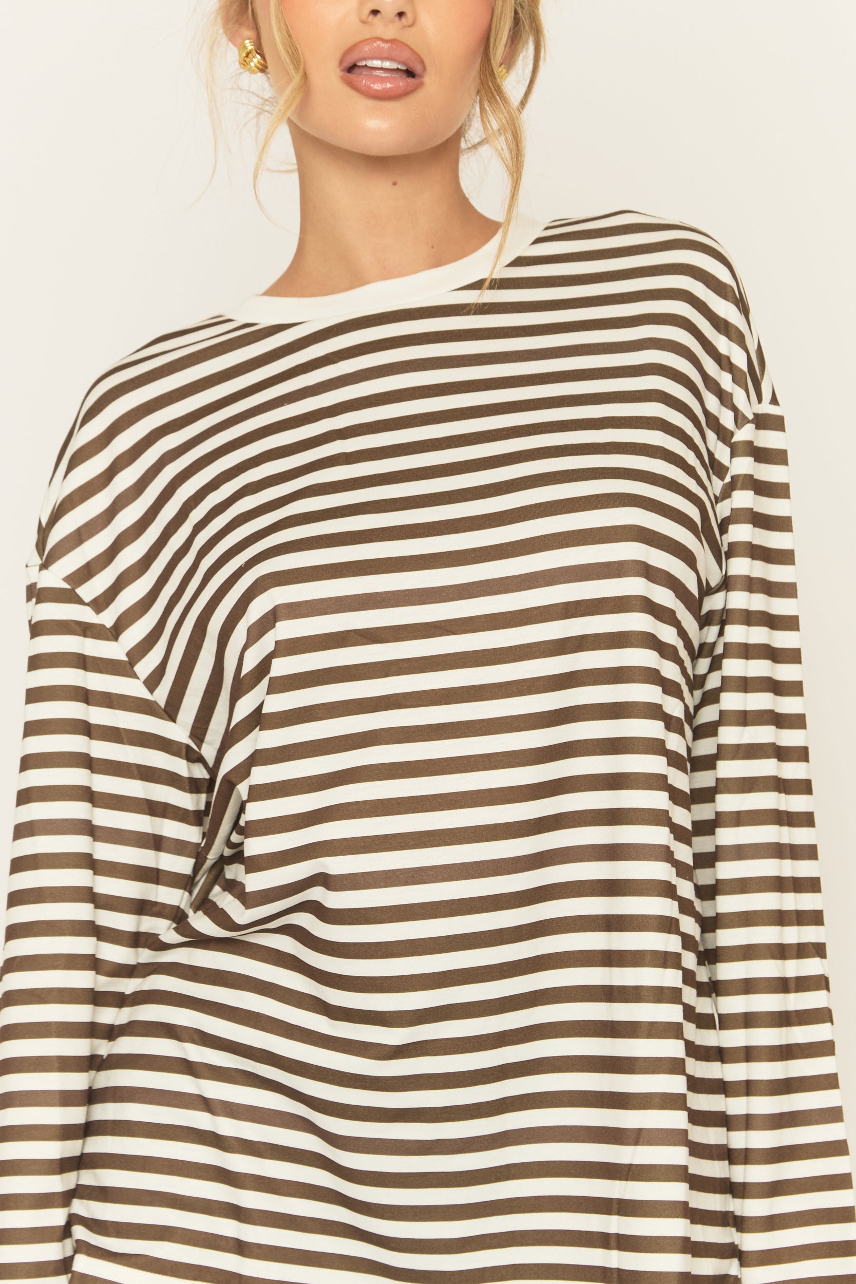 Brown Stripe Long Sleeve Crew Neck Top - Sabira
