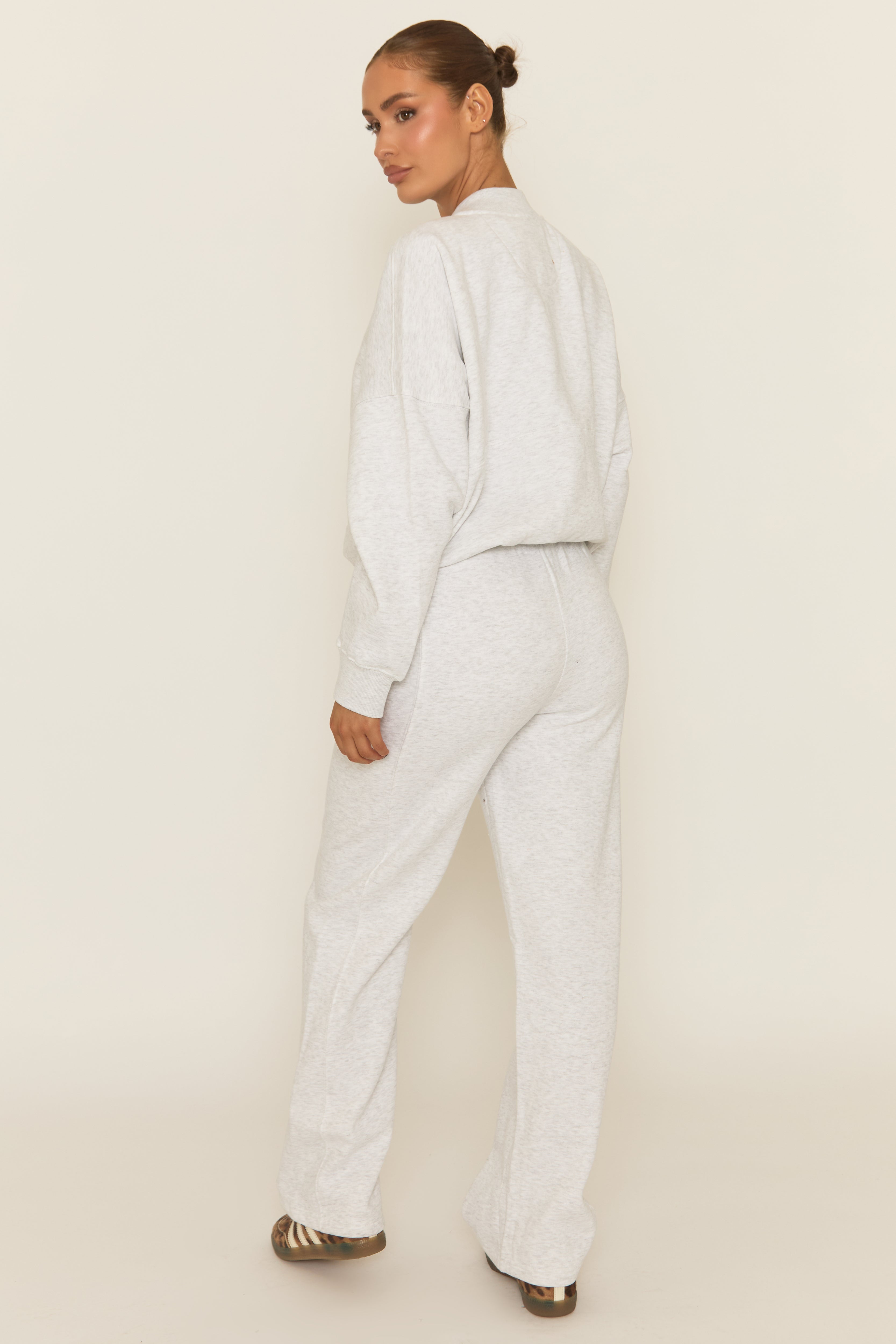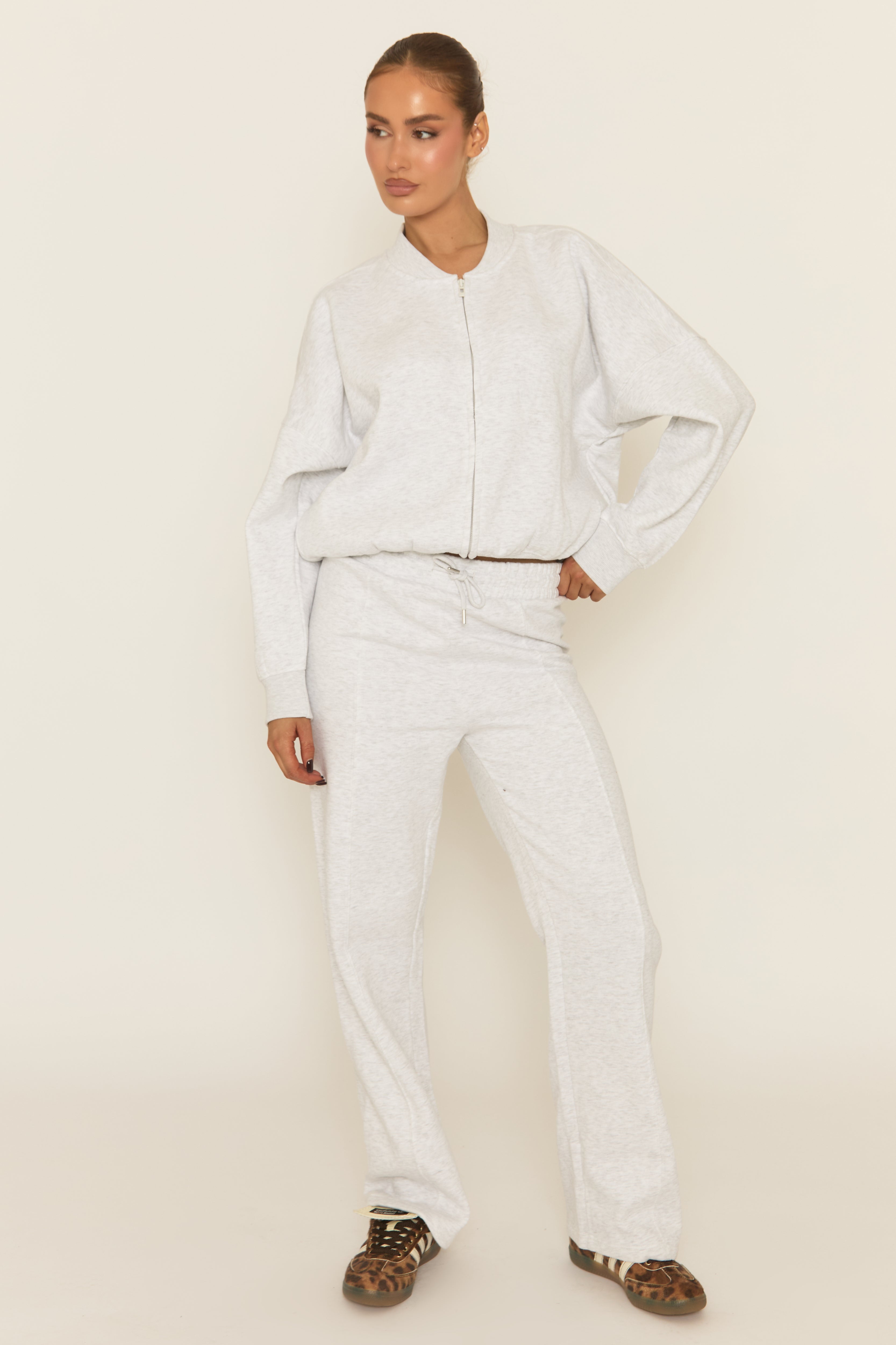 Bleach Grey Oversized Fit Zip Front Bomber Straight Leg Joggers Seam Detail Model wears size 8