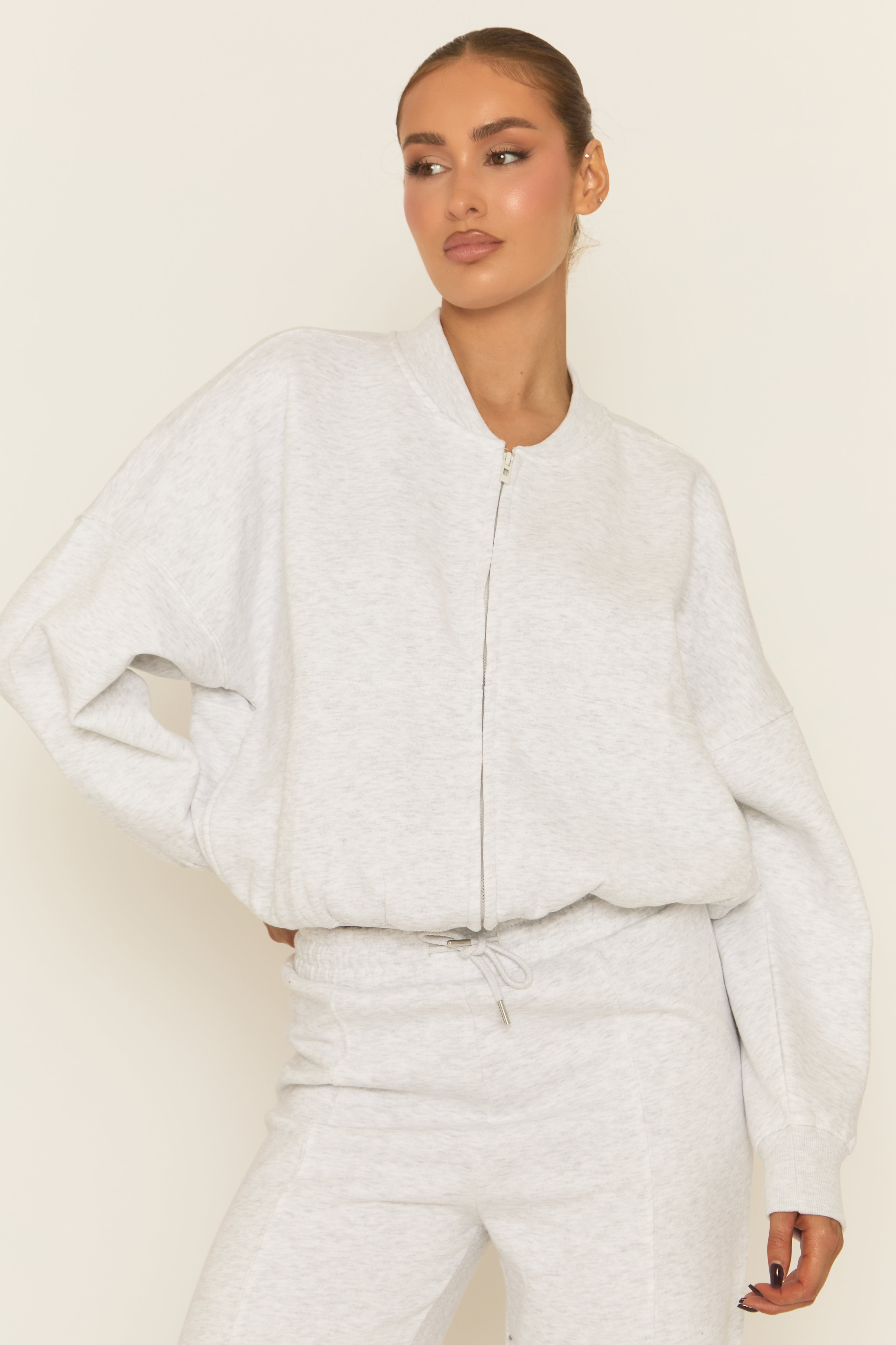 Bleach Grey Zip Front Bomber And Joggers Loungewear Co-ord Set - Sasha