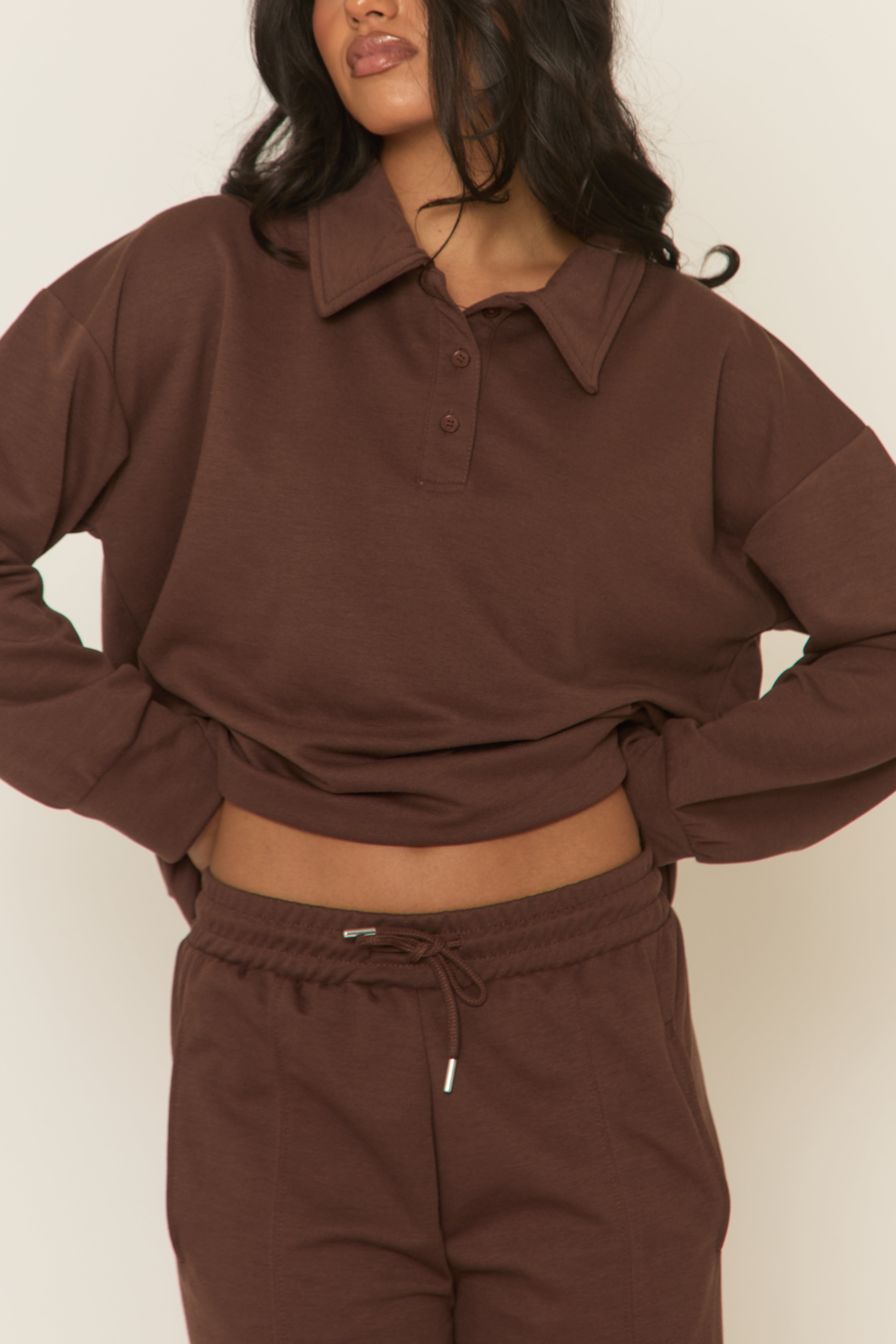 Chocolate Polo Collared Loungewear Set - Madisyn