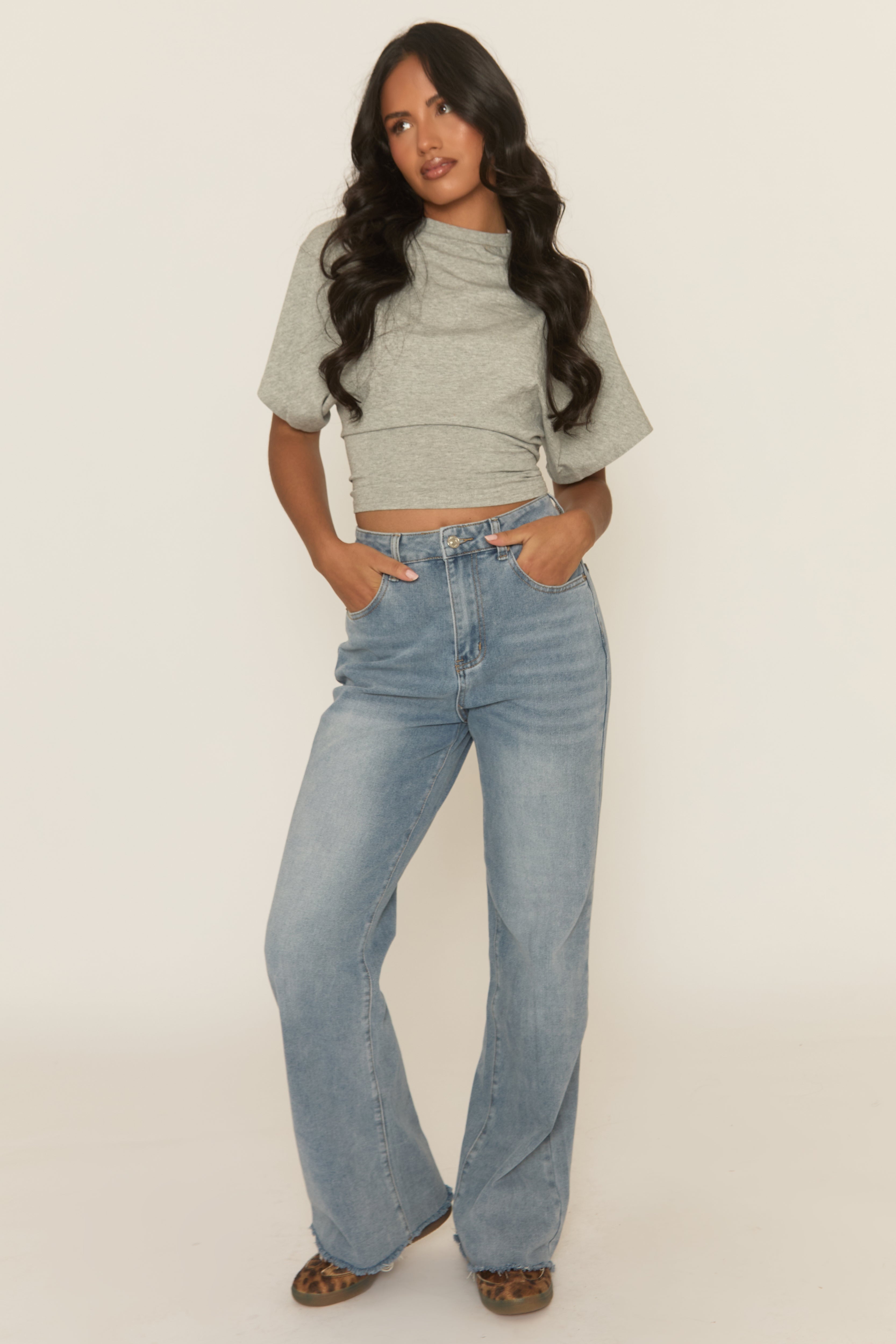 Grey Short Sleeve Cinched Waist T-Shirt - Hilde