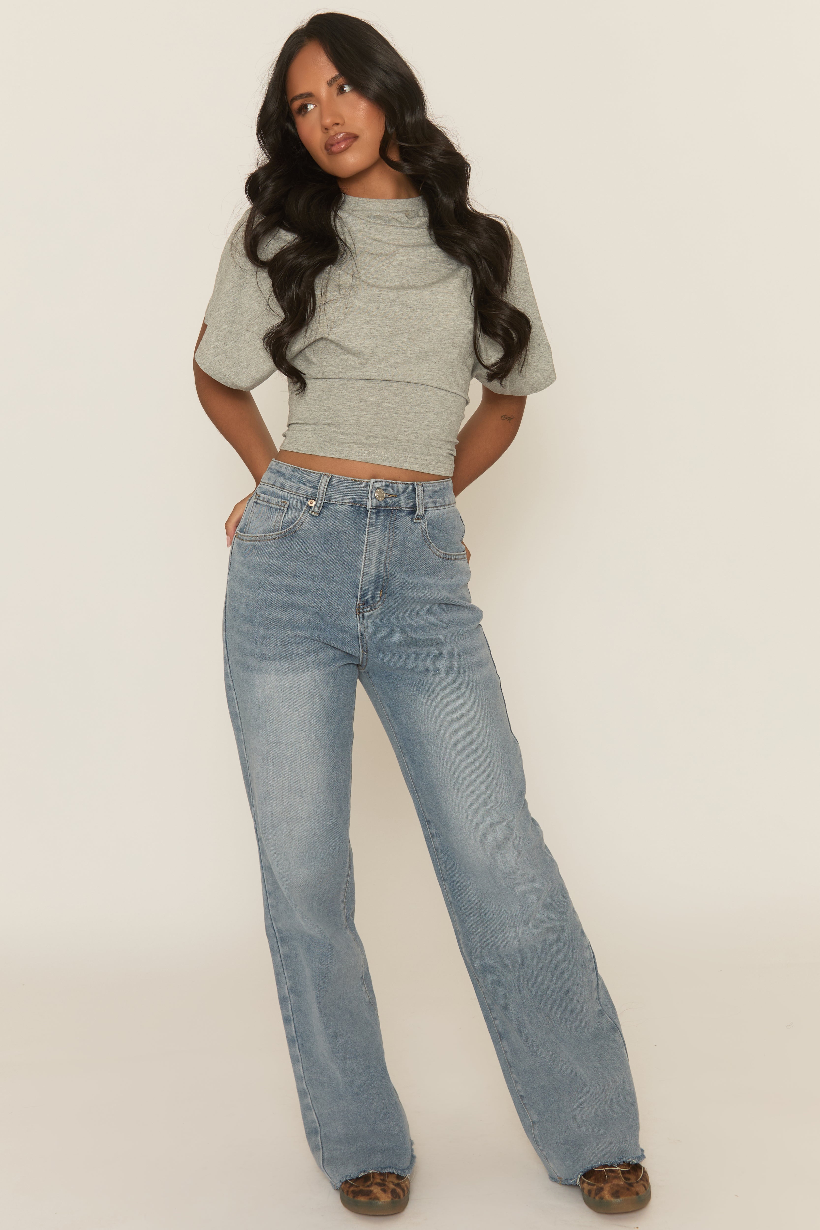 These jeans are everything we are loving for the new season and beyond. Featuring a denim fabric, high waist, frayed hem. Embrace the season's trends with our thoughtfully curated pieces that are perfect for mixing and matching, allowing you to create countless outfit combinations. Wear with heels and accessories of choice to complete your look
