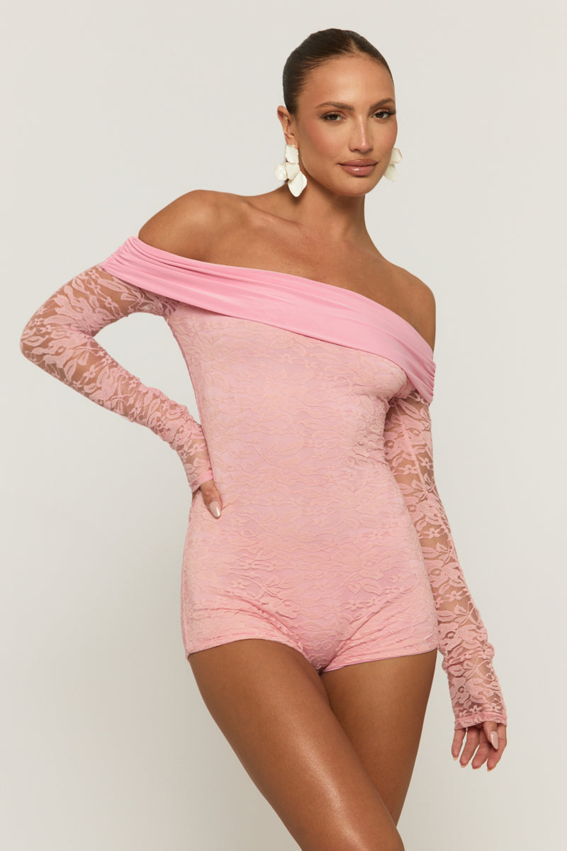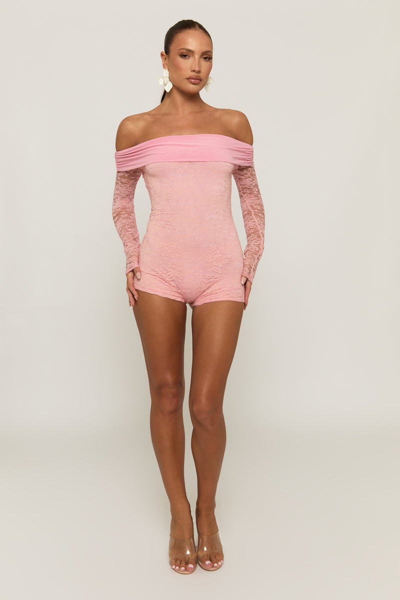 Pink Lace Bardot Playsuit - Irena