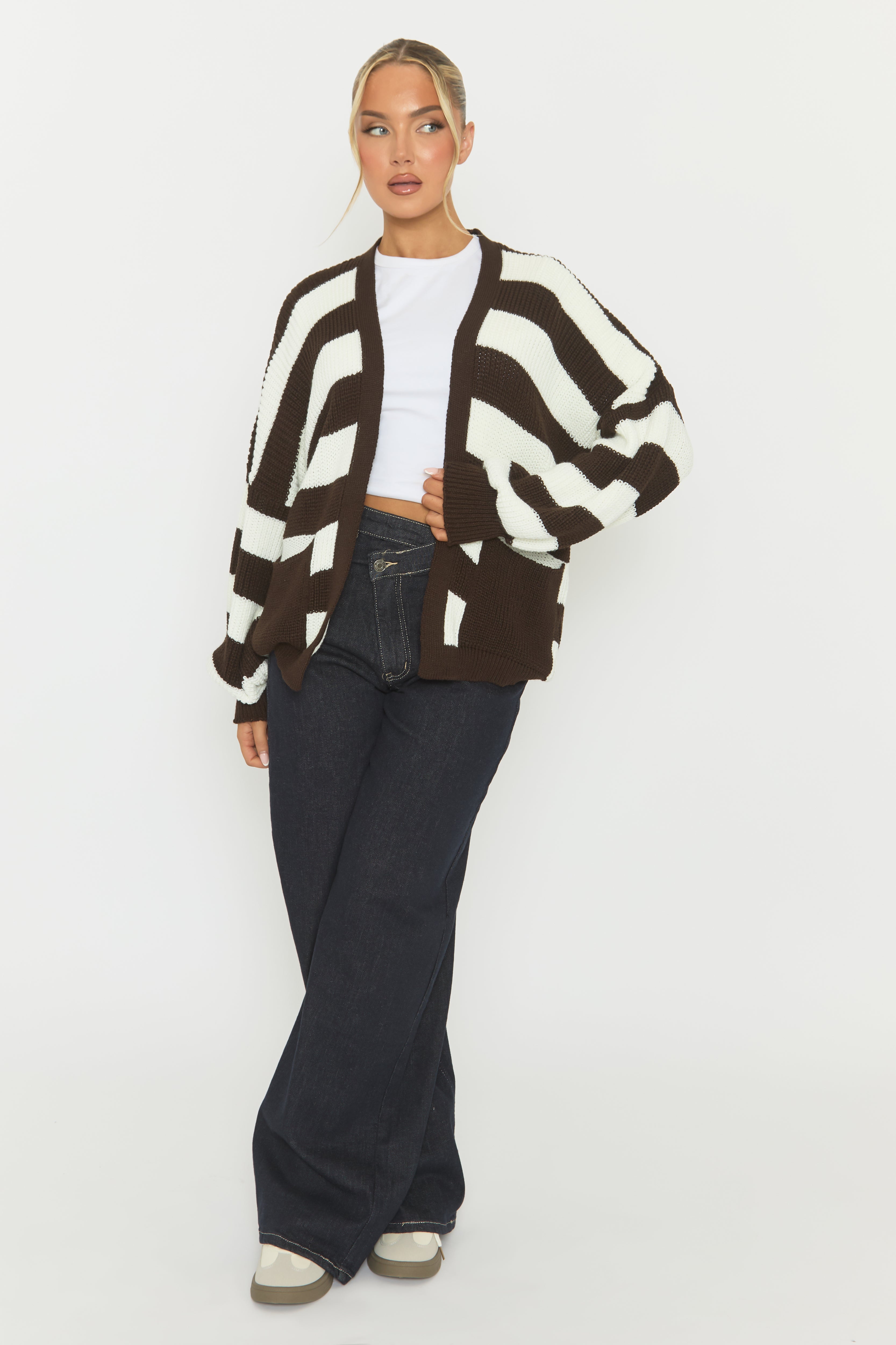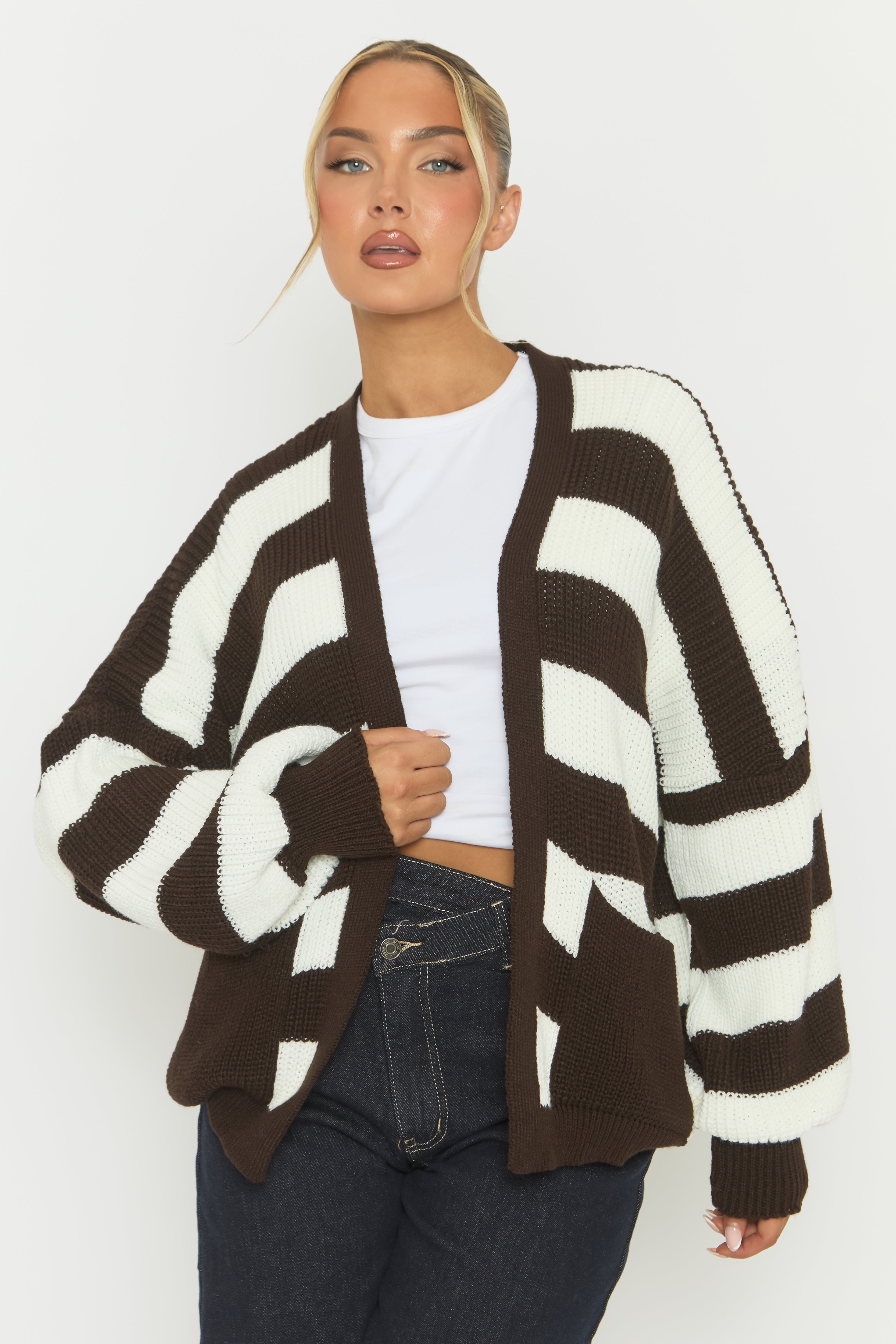 New season knit with this Chocolate Stripe Balloon Sleeve Knit Cardigan. Featuring a striped knit fabric, open front design with balloon sleeves and pockets. Embrace the season's trends with our thoughtfully curated pieces that are perfect for mixing and matching, allowing you to create countless outfit combinations. Wear with denim and chunky trainers.