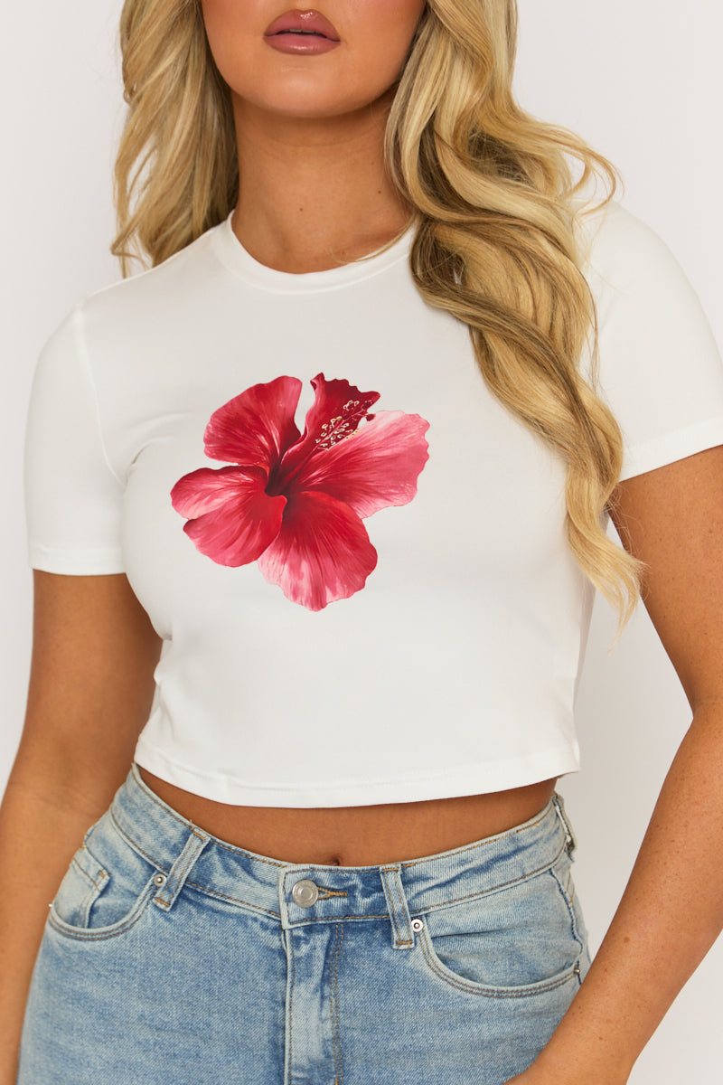 New season calls for new tops babe and this White Floral Crop Tshirt will surely be a good addtion to your wardrobe. Featuring a jersey fabric, floral print at front and a cropped length. Embrace the season's trends with our thoughtfully curated pieces that are perfect for mixing and matching, allowing you to create countless outfit combinations. Wear with heels and accessories of choice to complete your look.
