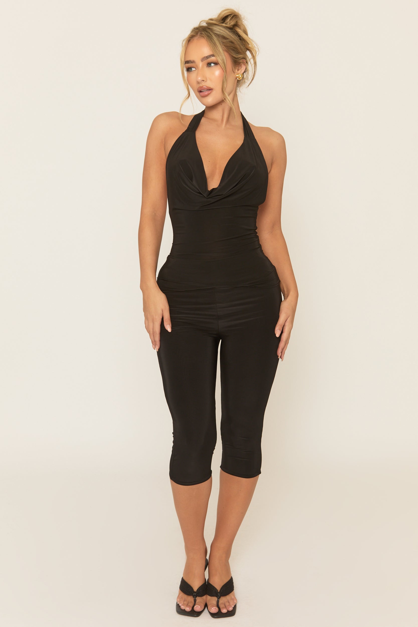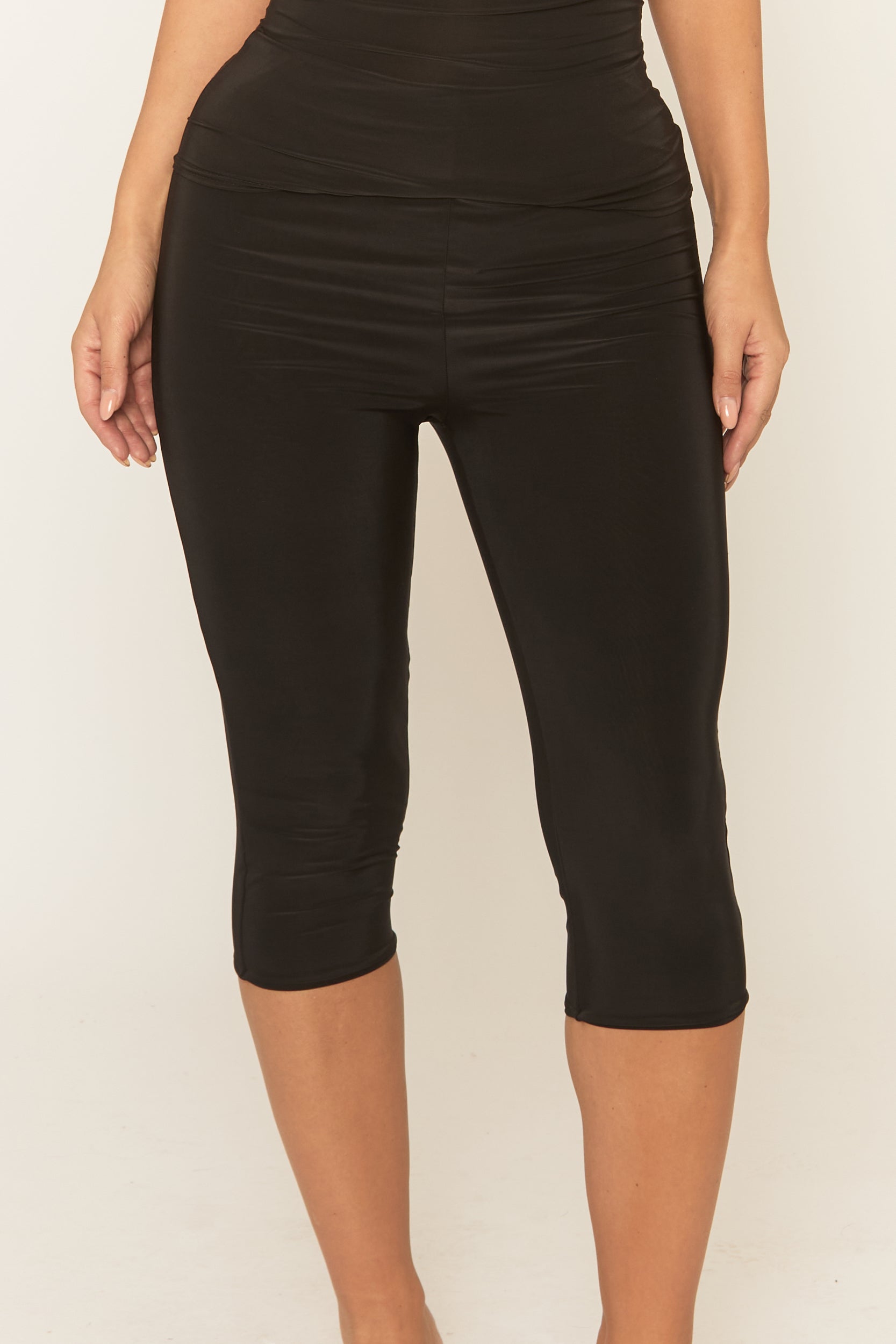 The wardrobe staple you need with these Black Double Slinky Capri Leggings. Featuring double layered slinky fabric, elasticated waistband and capri length. Embrace the season's trends with our thoughtfully curated pieces that are perfect for mixing and matching, allowing you to create countless outfit combinations. Wear with heels and a crop top for the ultimate look.