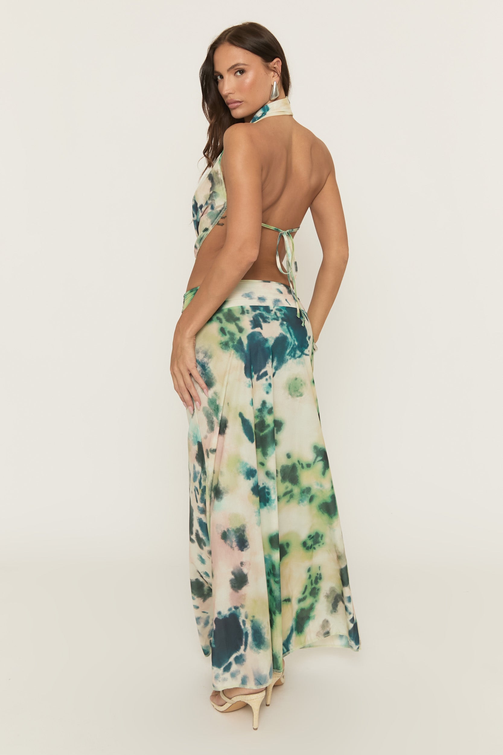 Blue Tie Dye Print Halter Top And Maxi Skirt Co-Ord Set - Aireen