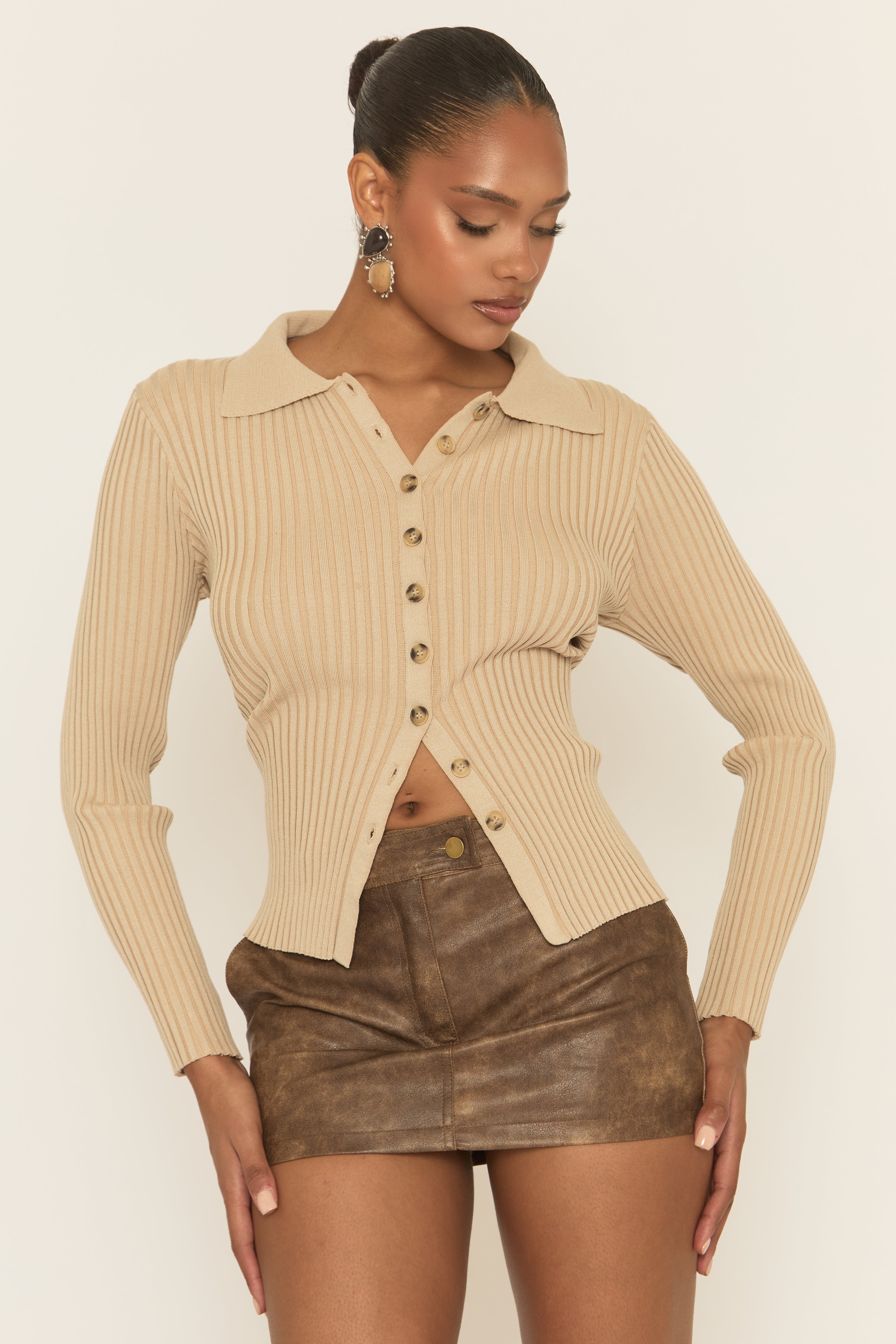 This seasons essential in our Vintage Brown PU Mini Skirt. Featuring a vintage faux leather fabric, mini length design with pockets and button front. Embrace the season's trends with our thoughtfully curated pieces that are perfect for mixing and matching, allowing you to create countless outfit combinations. Wear with chunky knits and knee high boots for a luxe edge.