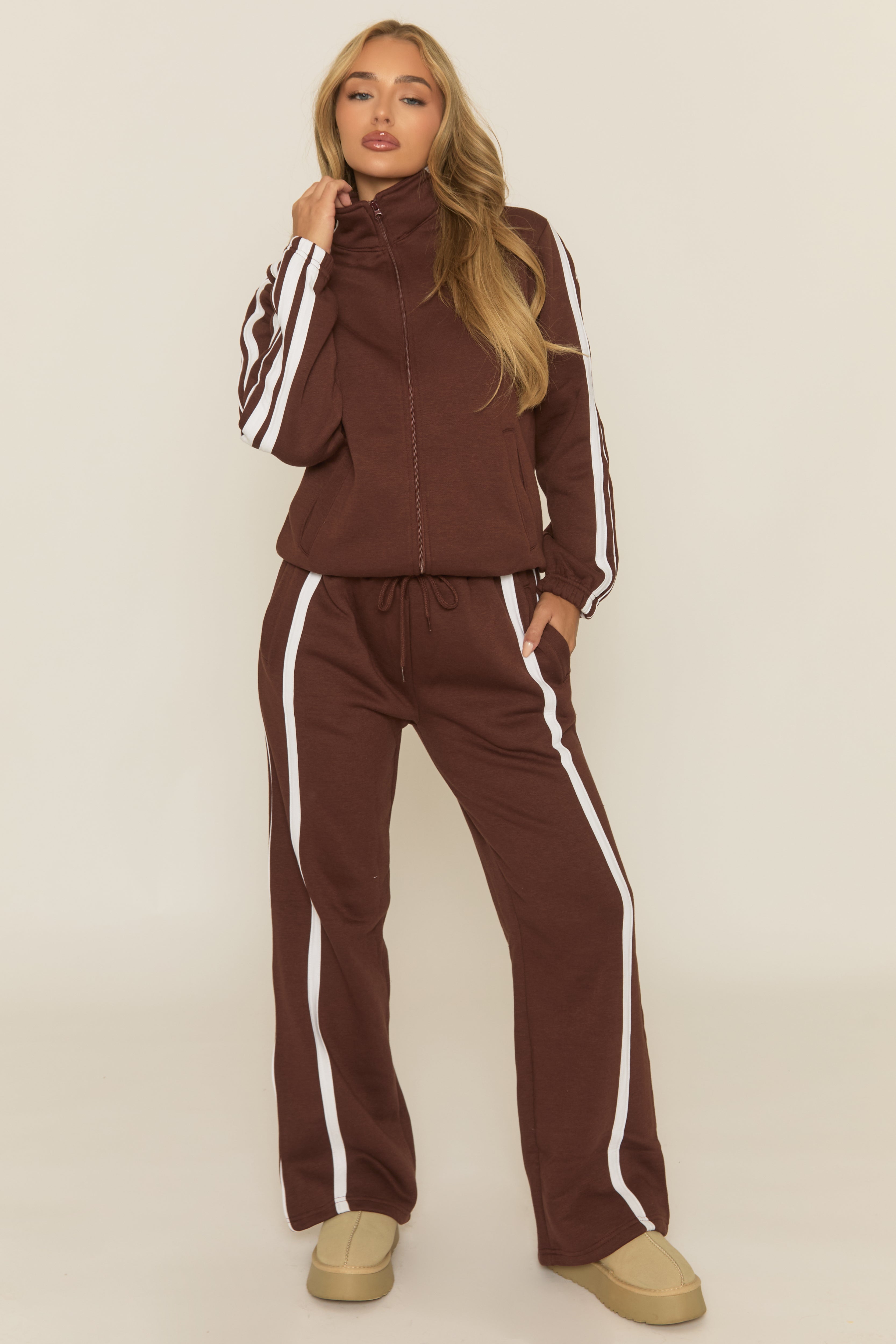 Chocolate Contrast Stripe Jacket and Joggers Loungewear Set - Denika