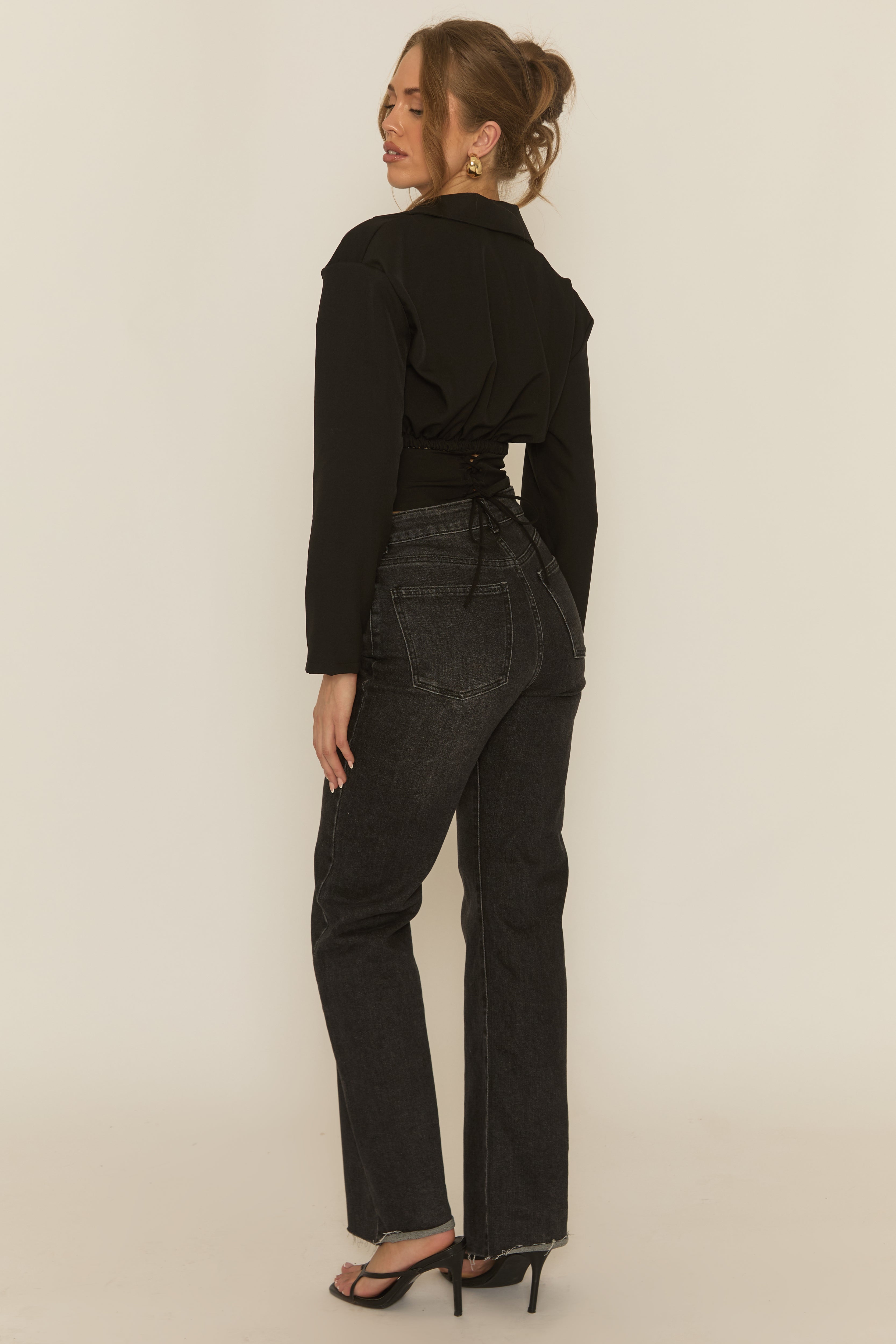 On trend styling in our Black Tailored Corset Detail Shirt. Featuring a woven fabric, long sleeve design with corset detail, collar and back lace up ties. Embrace the season's trends with our thoughtfully curated pieces that are perfect for mixing and matching, allowing you to create countless outfit combinations. Add heels and crop top for an instant put together look.