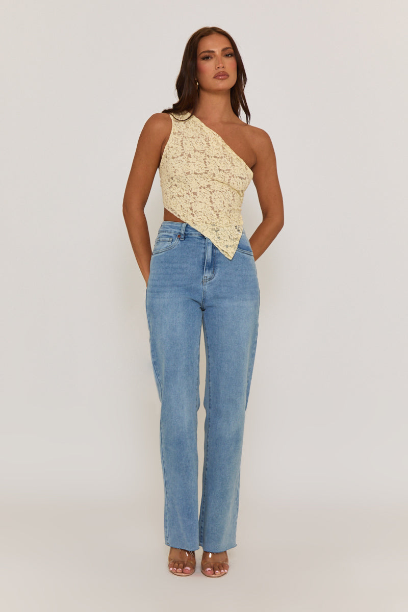 Elevate your style with the Butter Yellow Lace Tie Back Asymmetric Top. Featuring delicate lace detailing and a striking asymmetric hem, this top brings a sophisticated, yet daring twist to your wardrobe. The tie-back design adds a touch of allure and allows for a customizable fit, Embrace the season's trends with our thoughtfully curated pieces that are perfect for mixing and matching, allowing you to create countless outfit combinations. Wear accessories of choice to complete your look