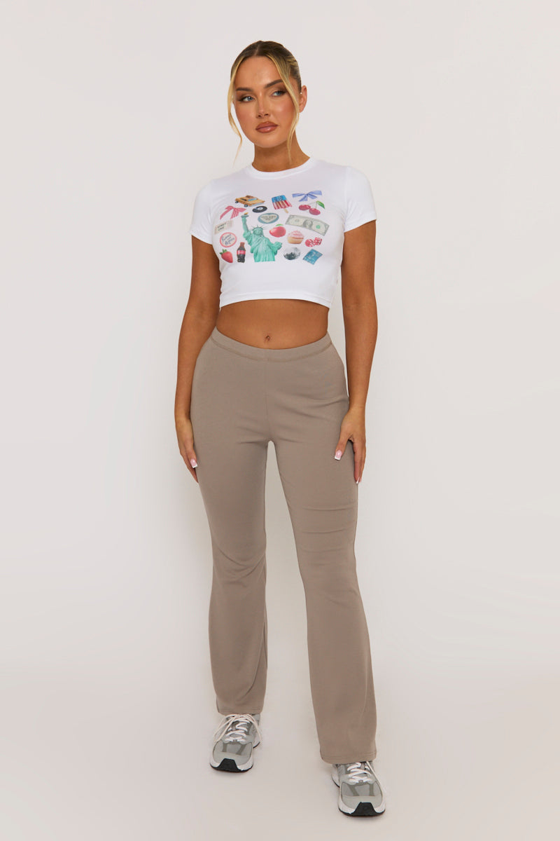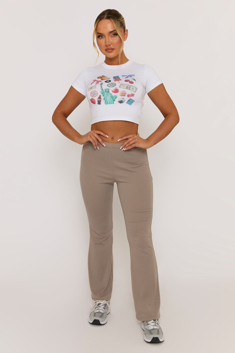 Take the stress out of your weekend styling in this Taupe Soft Jersey Flares. Featuring a jersey fabric, mid waist and a flared leg. Embrace the season's trends with our thoughtfully curated pieces that are perfect for mixing and matching, allowing you to create countless outfit combinations. Wear with accessories of choice to complete your look