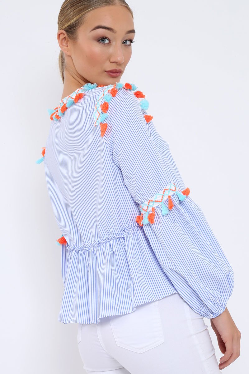 Blue Pinstripe Shirt with Tassel detailing - Roseanna