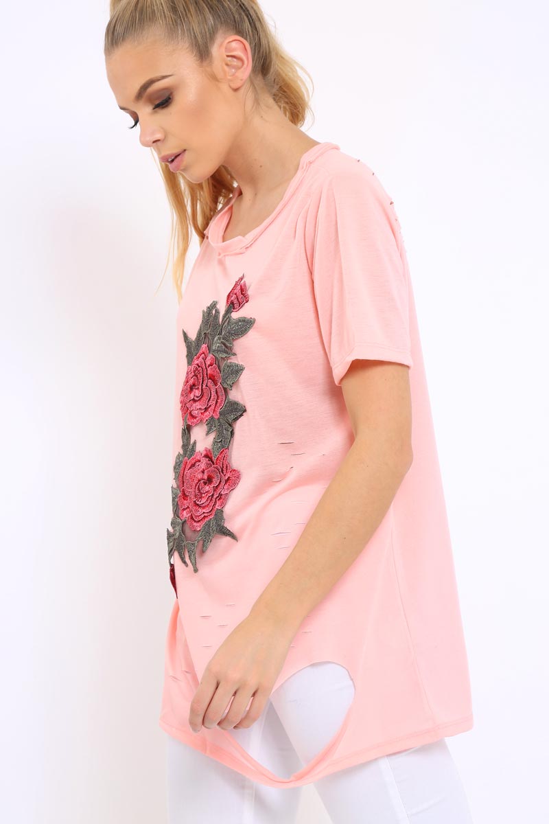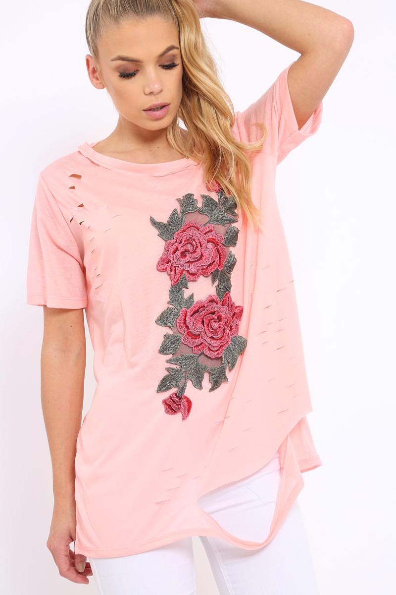 Pink Applique Slashed Over Sized T-Shirt - Louella